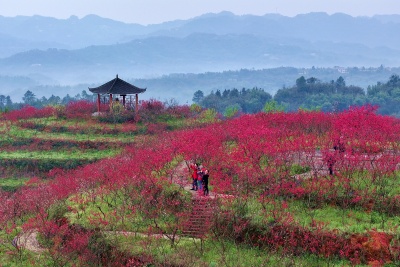 眼下,四川省瀘州市納溪區(qū)上馬鎮(zhèn)龍湖水香的上萬株桃花迎春綻放,一簇簇粉色的、紅色的桃花綴滿枝頭。放眼望去,青山、村莊、桃花,勾勒出一幅幅美麗的畫卷,游客穿梭在桃林間,賞花拍照,盡享盎然春光。