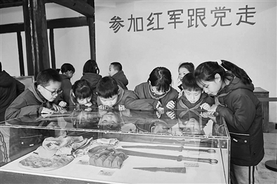 學(xué)生瞻仰梓潼縣許州紅軍革命歷史紀(jì)念館烈士遺物。楊東 攝