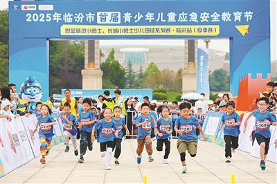 6月1日,2025年臨汾市首屆青少年兒童應(yīng)急安全教育節(jié)暨藍(lán)精靈小勇士、長(zhǎng)城小勇士少兒田徑系列賽·臨汾站(夏季賽)在山西省臨汾市汾河文化生態(tài)景區(qū)九州廣場(chǎng)開(kāi)賽。來(lái)自中國(guó)、馬來(lái)西亞的500余名少年兒童歡樂(lè)競(jìng)技,在運(yùn)動(dòng)中學(xué)習(xí)安全知識(shí),在競(jìng)技中傳承體育精神。李現(xiàn)俊 攝