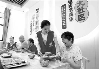 近年來,江西省新余市渝水區(qū)堅(jiān)持黨建引領(lǐng),積極探索“黨建+”養(yǎng)老服務(wù)模式,因地制宜開展老年人助餐服務(wù),依托社會資源建設(shè)社區(qū)“鄰里食堂”,為老年人提供便捷、實(shí)惠、營養(yǎng)健康的餐飲服務(wù),助力老年群體享受家門口的幸?!笆场惫?,食堂還為行動不便的老人提供貼心的送餐服務(wù)。圖為6月11日,渝水區(qū)新鋼街道路東社區(qū)志愿者為轄區(qū)老人提供就餐服務(wù)。廖海金 攝