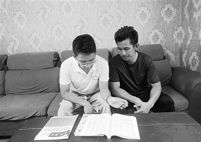 吉列史且(左)和父親吉列史日(右)在商量填報(bào)志愿。 阿布洛哈小學(xué)供圖