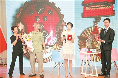 邀請離休干部謝臘英(左二)登臺講述從昆明部隊來到青白江參與三線建設的經(jīng)歷。