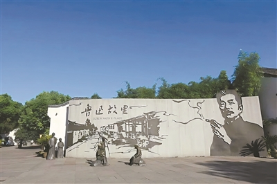 魯迅夾煙景墻位于魯迅故里東入口,由花崗巖組成,高4.5米,長(zhǎng)15米左右,畫面主要由魯迅畫像和魯迅故里的典型風(fēng)貌組成,鐫寫了蒼勁有力的“魯迅故里”四個(gè)大字,至今已有22個(gè)年頭,已成為魯迅故里的標(biāo)志之一。作為景區(qū)入口,更作為紹興文化地標(biāo)、網(wǎng)紅打卡點(diǎn),景區(qū)當(dāng)初為什么會(huì)選這幅畫作為墻畫原型?