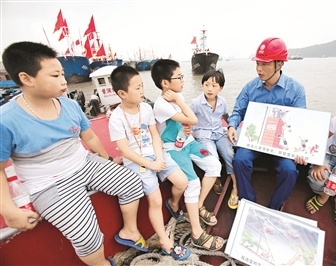 李永軍(右一)結(jié)合漁民日常用電場景,為兒童科普電力安全要點。