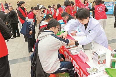 文明實(shí)踐集中示范活動(dòng)現(xiàn)場(chǎng),嵐皋縣中醫(yī)醫(yī)院醫(yī)生在開展義診服務(wù)。陳博 攝