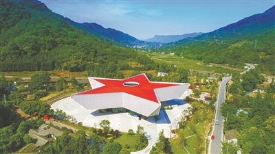 以紅色五角星形狀呈現(xiàn)的四川紅軍長征數(shù)字展示館。