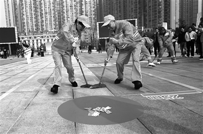 12月1日,四川省內(nèi)江市舉辦川中丘陵四市環(huán)衛(wèi)工人趣味運動會。來自內(nèi)江各縣區(qū)及自貢、資陽、遂寧等地的18支環(huán)衛(wèi)工人代表隊齊聚賽場,通過參加保潔車障礙穿梭、環(huán)衛(wèi)技能混合接力、趣味掃“塵”、平衡運“物”等比賽項目,盡情享受運動帶來的快樂。圖為當日,在四川省內(nèi)江國際會展中心,環(huán)衛(wèi)工人正在參加趣味運動會。蘭自濤 攝
