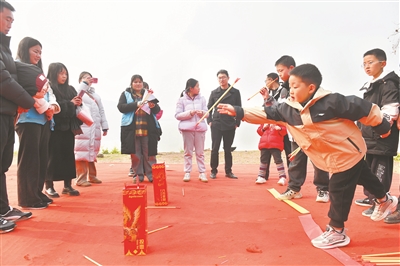 1月17日,四川省閬中市文成鎮(zhèn)嘉陵江畔的一戶農(nóng)家樂內(nèi)充滿了歡聲笑語。閬中市總工會打造的公益服務(wù)平臺“閬工學(xué)堂”組織70個家庭在此開展親子活動,通過印福字、投壺、寫春聯(lián)等活動,讓家長和孩子們零距離體驗(yàn)傳統(tǒng)民俗的魅力。圖為孩子們在家長的陪同下參加活動。王玉貴 攝