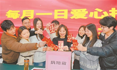 地處重慶市永川區(qū)的重慶金玖新能源集團(tuán)有限公司秉承責(zé)任擔(dān)當(dāng)和回報(bào)社會(huì)的宗旨,開展每月愛(ài)心一日捐活動(dòng),鼓勵(lì)員工每月捐獻(xiàn)一天的工資,用于公益慈善事業(yè),募集的所有款項(xiàng)都上交重慶市慈善聯(lián)合總會(huì)。圖為員工們踴躍捐款的場(chǎng)景。 楊初 攝