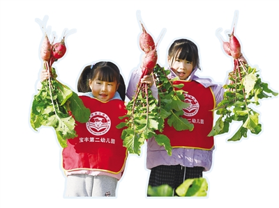 湖北省竹山縣寶豐鎮(zhèn)第二幼兒園的種植園內小朋友們在拔蘿卜。朱本雙 攝