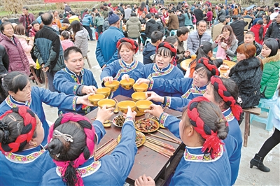 村民在甘溪“合約食堂”集中辦酒。