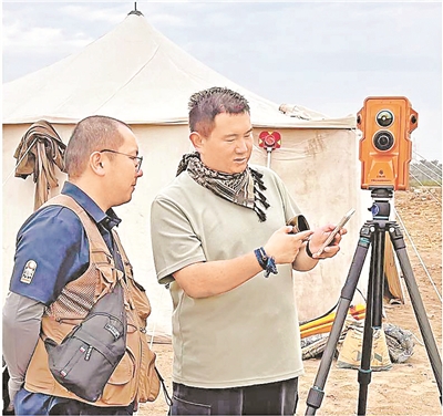 中方人員調(diào)試國產(chǎn)測繪設(shè)備“文保一號”。 朱德蒙 攝